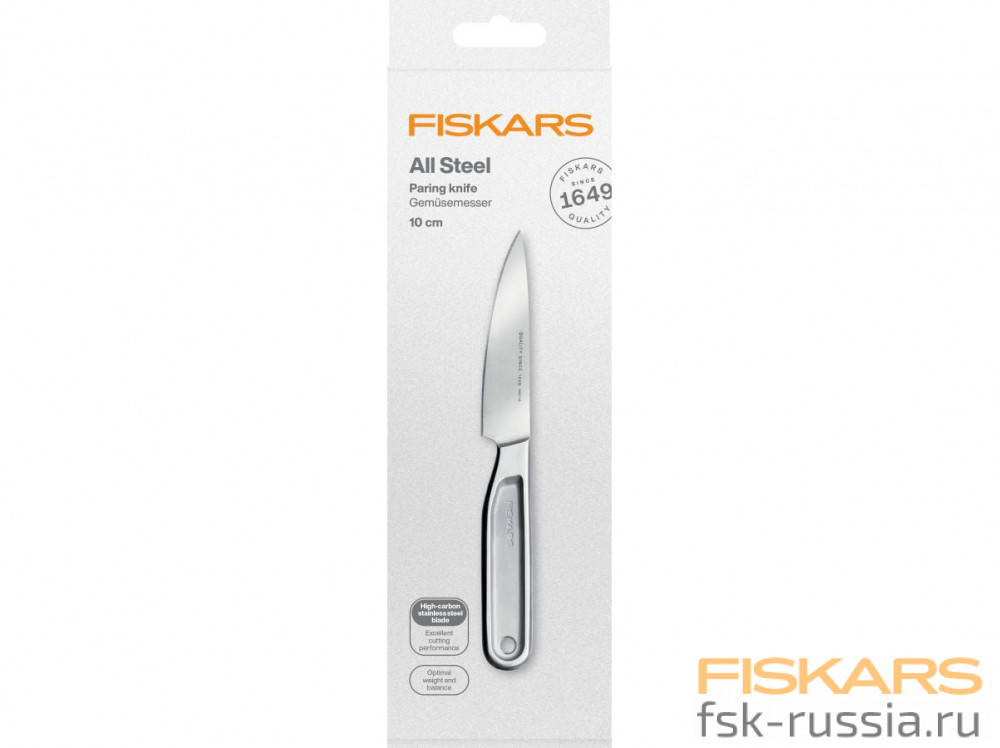 Нож для чистки овощей 10см цельнометаллический All Steel Fiskars