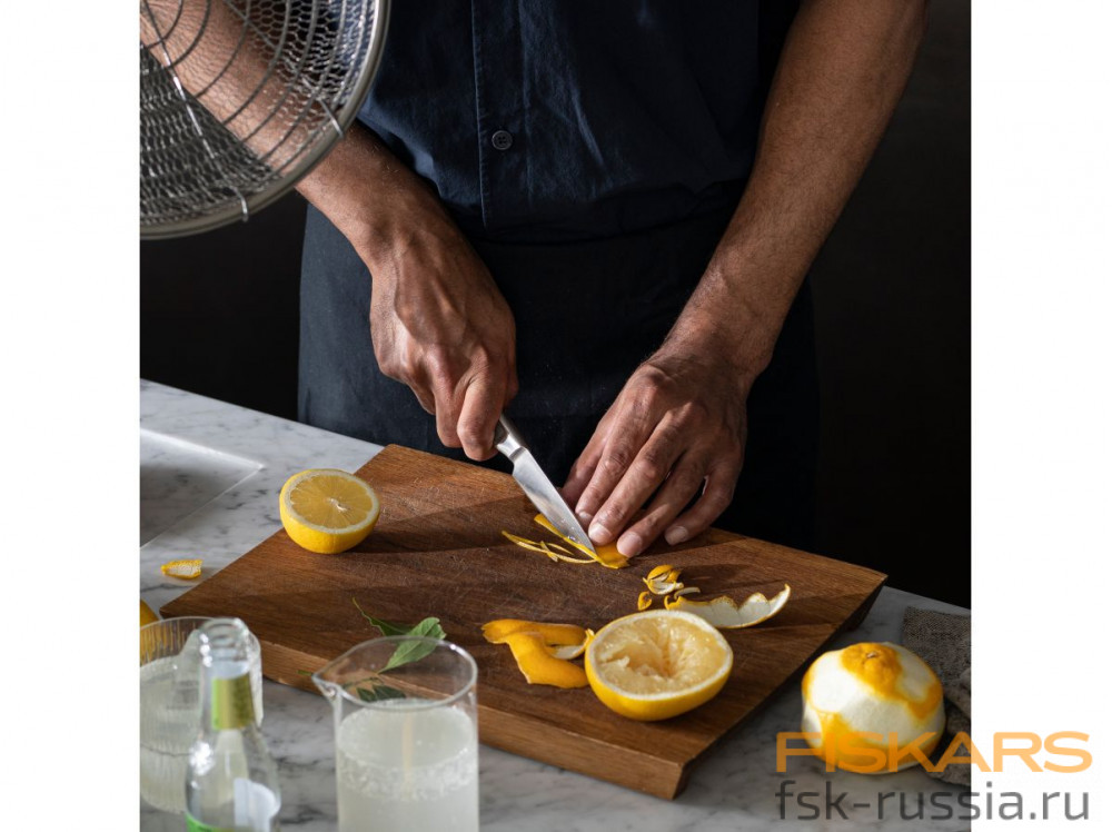 Нож для очистки овощей Fiskars All Steel 10 cm (1062887) идеально подходит для очистки и нарезки мелких фруктов и овощей. Ножи из линейки All Steel сочетают в себе материалы превосходного качества с непревзойденной функциональностью. Изготовлен из японской высокоуглеродистой стали для отличной производительности и долговечности. Оптимально сбалансирован для высочайшего качества резки. Отлит из цельного куска нержавеющей стали. Заточка рекомендуется с помощью точилки Fiskars Roll-Sharp™ или точильного камня.