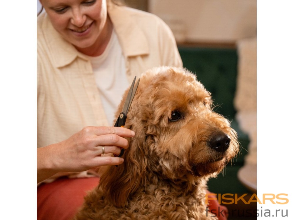 Ножницы для груминга собак и кошек Fiskars (2009126) - это ножницы для подравнивания и формирования шерсти при домашнем груминге собак и кошек. Они подходят для аккуратной работы там, где важны точность, контроль и чистый срез - вокруг мордочки, лап, ушей и по контуру шерсти.